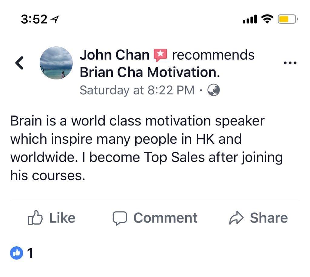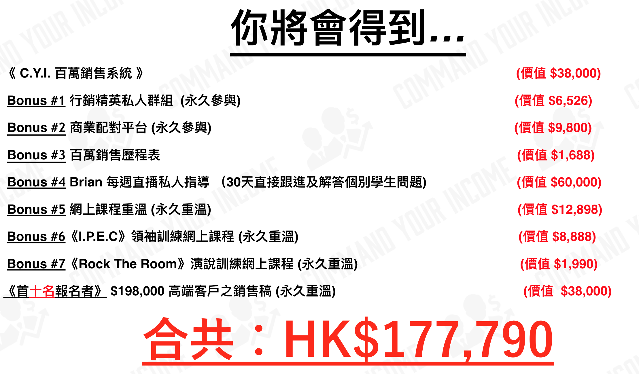 成功參加《C.Y.I. 百萬行銷系統》的學員,你將會獲得 Brian Cha 車志健的 HKD $30,000 獎勵保證。